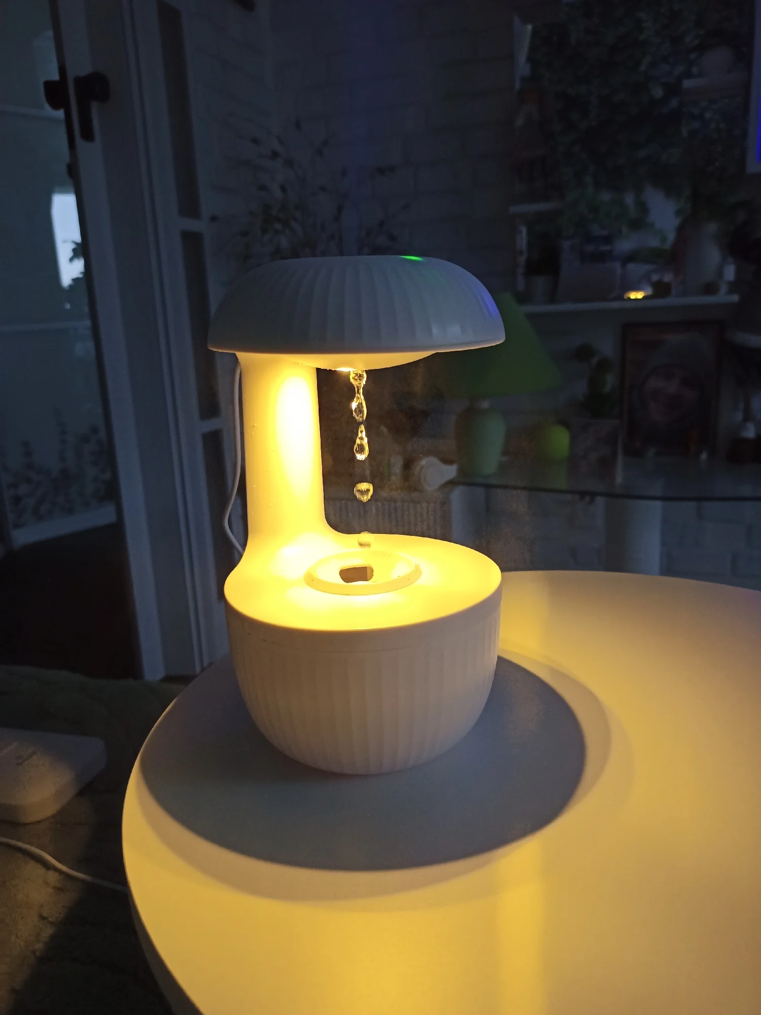 ✔ Anti-Gravity Illusion (feature text) – Uses optics to make droplets look like they’re floating upwards, paired with ambient lighting and a soothing water sound for a calming atmosphere.